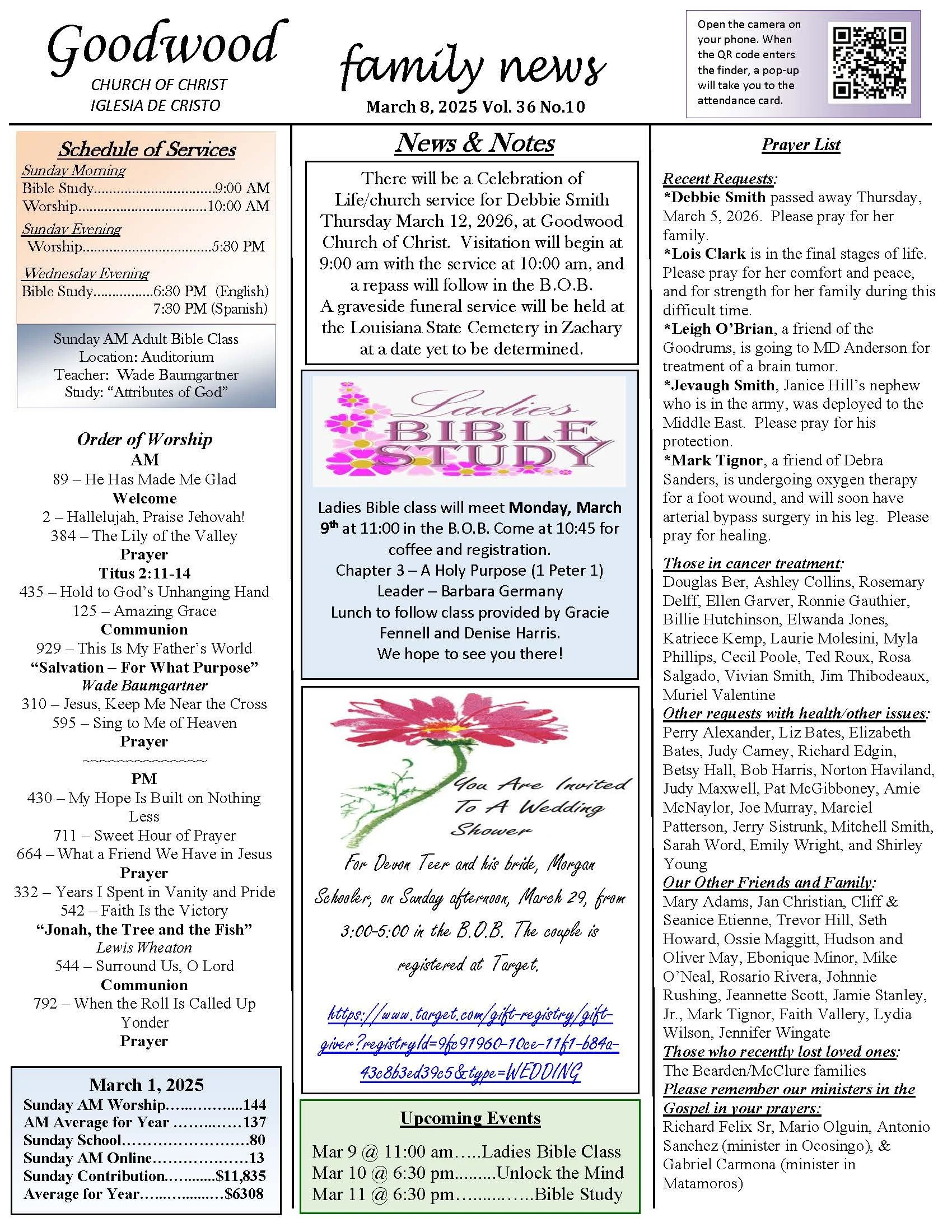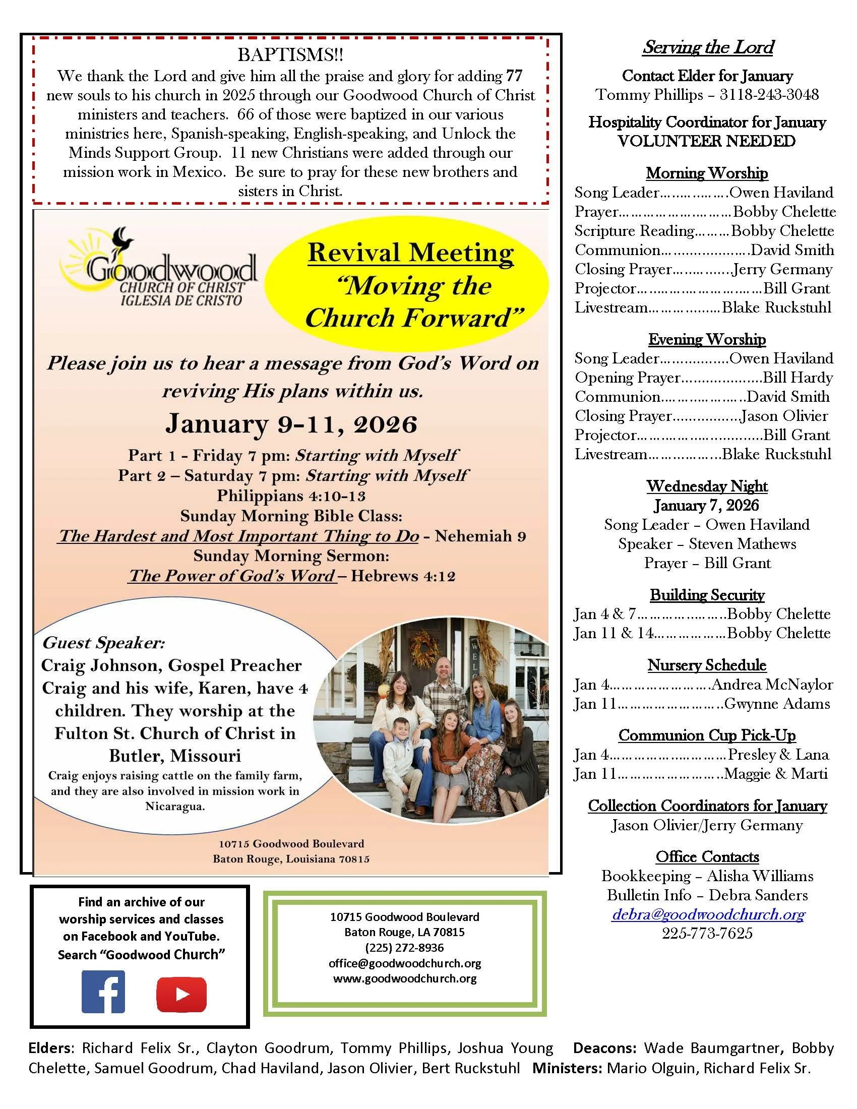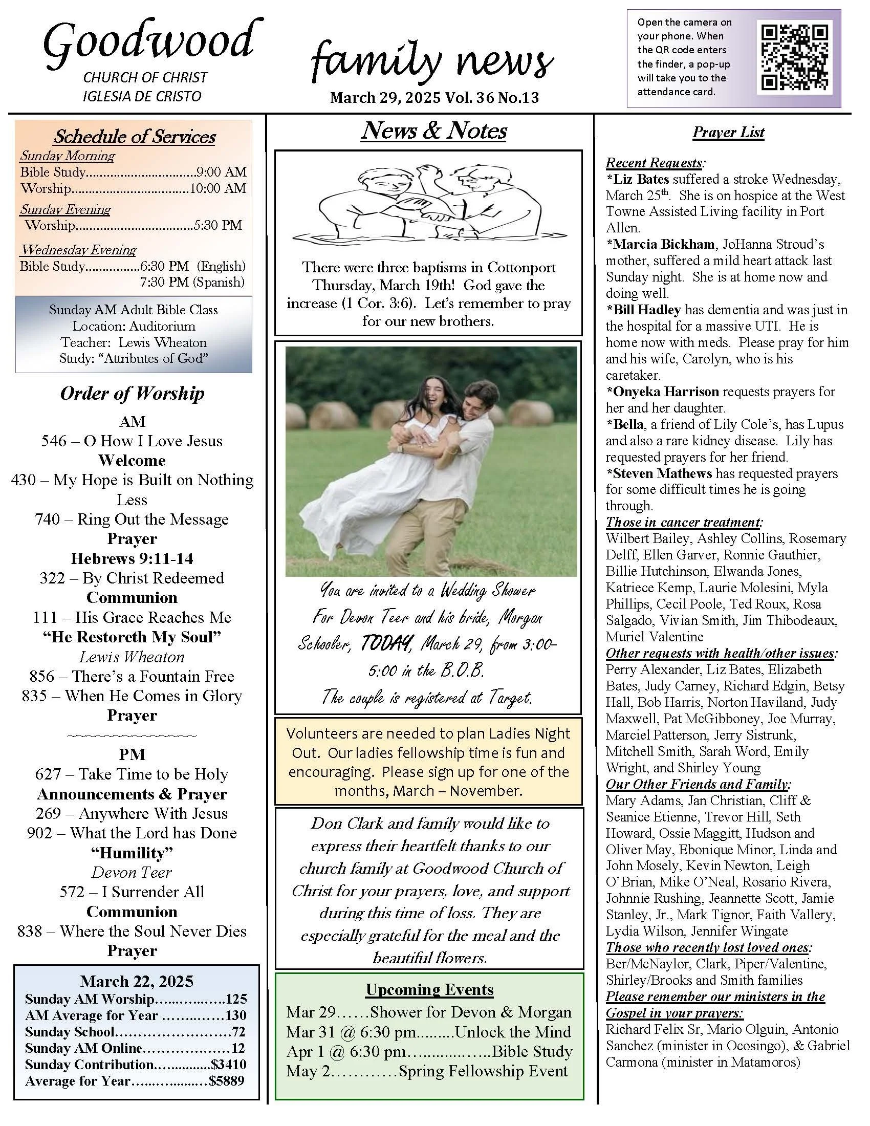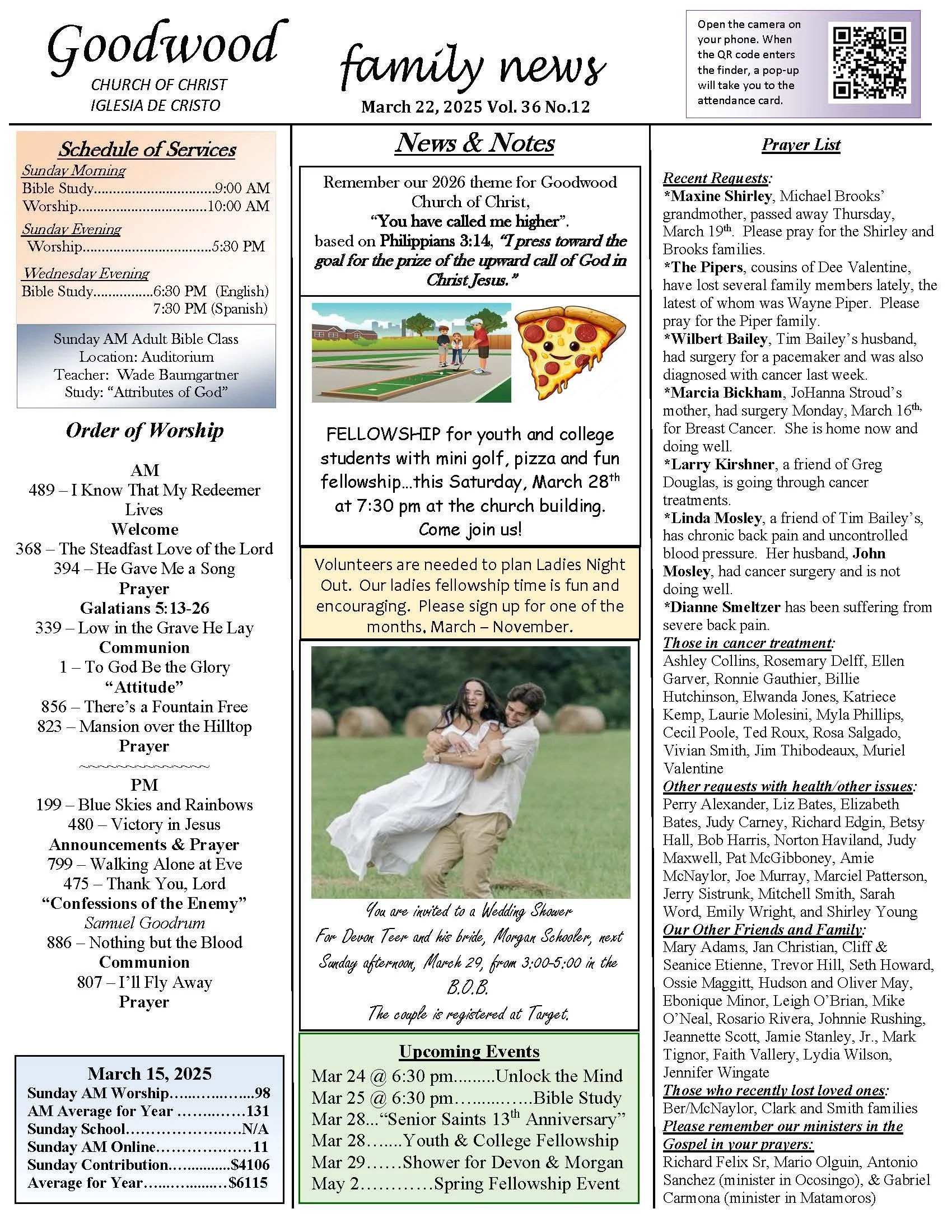 On Sunday mornings at 10:00 we have a worship service in the main auditorium in English and a Spanish service in an auxiliary room. Evening services are at 5:30 pm.